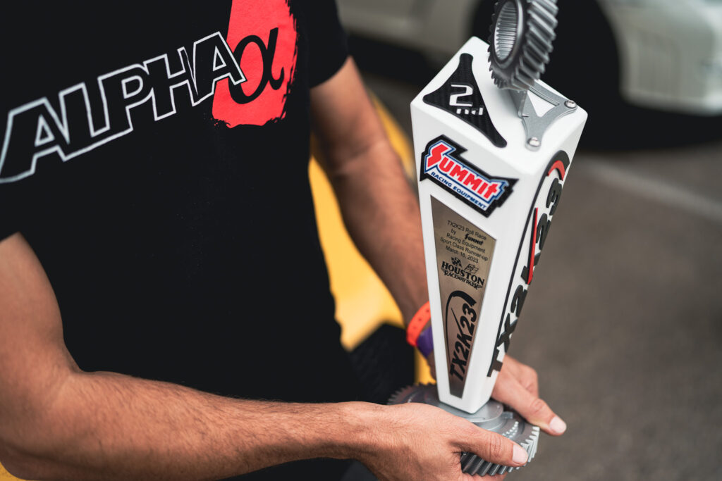 Jonathan Clavijo brings home some silver hardware with a second place finish in the Sport class! With this years minimum MPH to enter the roll race event set at an astounding 179.83 MPH, we knew competition was going to be tough for any car making under 1500 WHP. Going round for round with some very fast cars, Jonny in his Vegas Yellow ALPHA 12 R8 was able to close out the roll race event strong with a podium finish at TX2k 2023!
