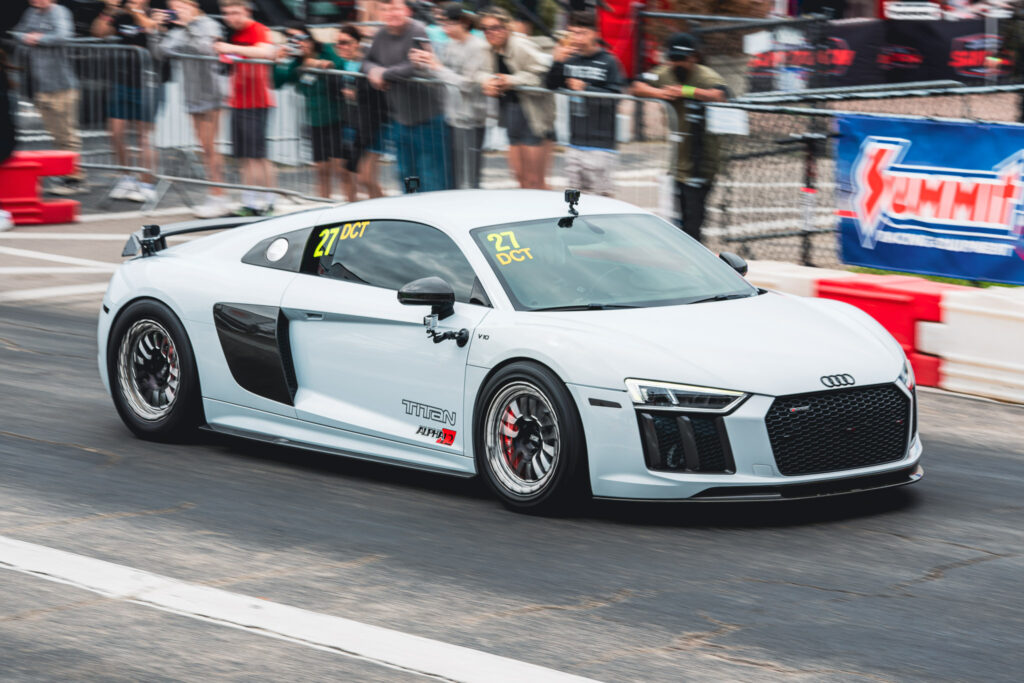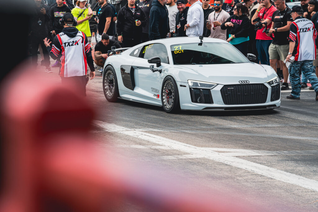 For TX2K23, we were able to bring multiple 1000+ wheel horsepower Audi R8s, Lamborghini Huracans, and Nissan GTRs, many of which set personal bests, and some even bringing home second place in roll racing Sport class, and first place in the drag racing GTR68 class.